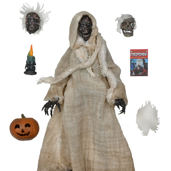 NECA’s Ultimate Creep, released to honour 40 years of Creepshow, stands tall at 7 inches and looks fantastic, if you're into rotting flesh and glowing eyes. His sculpt is lovingly grotesque, cloaked in real fabric robes that billow just the way a haunted breeze might demand.